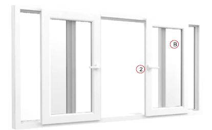 4 bölmeli sürme uygulamalarında A kanadındaki kol 1 No'lu konumdan 2 No'lu konuma getirilerek kanat açılır. Kanatlar sağa ve sola sürülür.