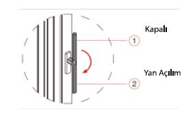4 bölmeli sürme uygulamalarında sağa ve sola açılmış iki kanat ortada birleştirilir. Kol 2 No'lu konumdan 1 No'lu konuma getirilerek kilitlenir.