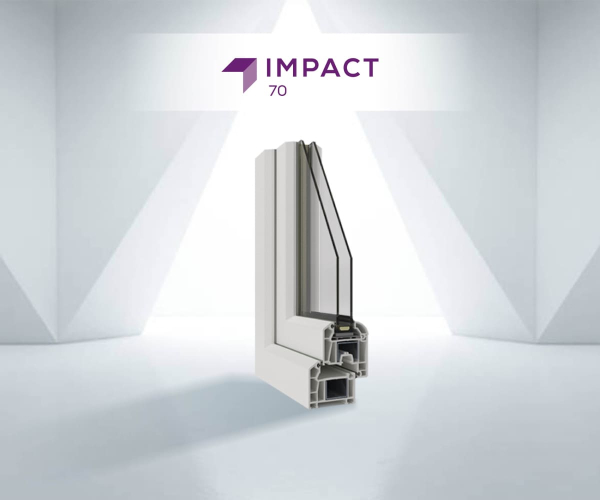 4 odacıklı, 70 mm genişliğindeki Impact Sistemi, aynı zamanda iç-dış contalama sistemine sahiptir. Gri contası, kasa profillerindeki kanalları kapatan özel kapama profili sayesinde estetik bir görünüm sağlar. Yüksek izolasyon özellikleri ile mükemmel ısı, su ve toz yalıtımı sunar.